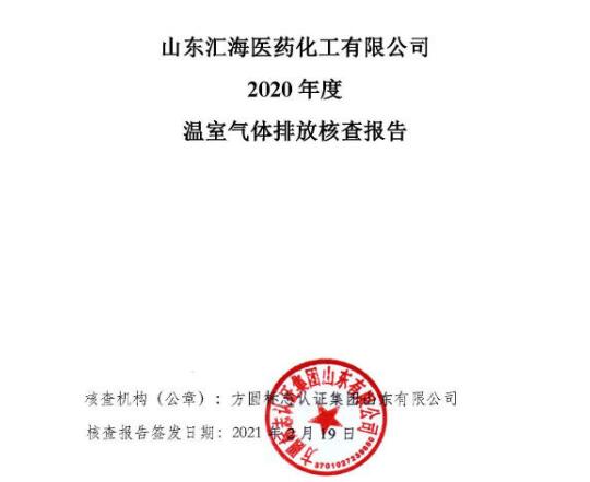 山東匯海醫(yī)藥化工有限公司碳排放核查報告發(fā)表時間:2021-04-06