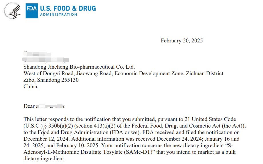 喜訊 I 國內(nèi)首家 金城生物SAMe-DT通過FDA NDI認(rèn)證