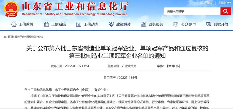 據(jù)了解,此次評審認定是為健全完善全省制造業(yè)優(yōu)質(zhì)企業(yè)梯度培育體系建設(shè)工作,深入推進產(chǎn)業(yè)基礎(chǔ)高級化和產(chǎn)業(yè)鏈現(xiàn)代化,根據(jù)《山東省關(guān)于加快培育發(fā)展制造業(yè)優(yōu)質(zhì)企業(yè)的實施意見》安排部署,經(jīng)企業(yè)自愿申報、各市工業(yè)和信息化局推薦、限定性條件論證審核、行業(yè)審查、專家論證和網(wǎng)上公示,最終對評審認定結(jié)果進行公布。